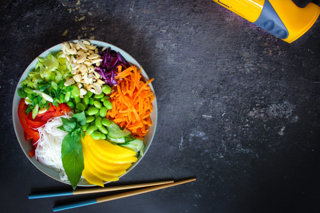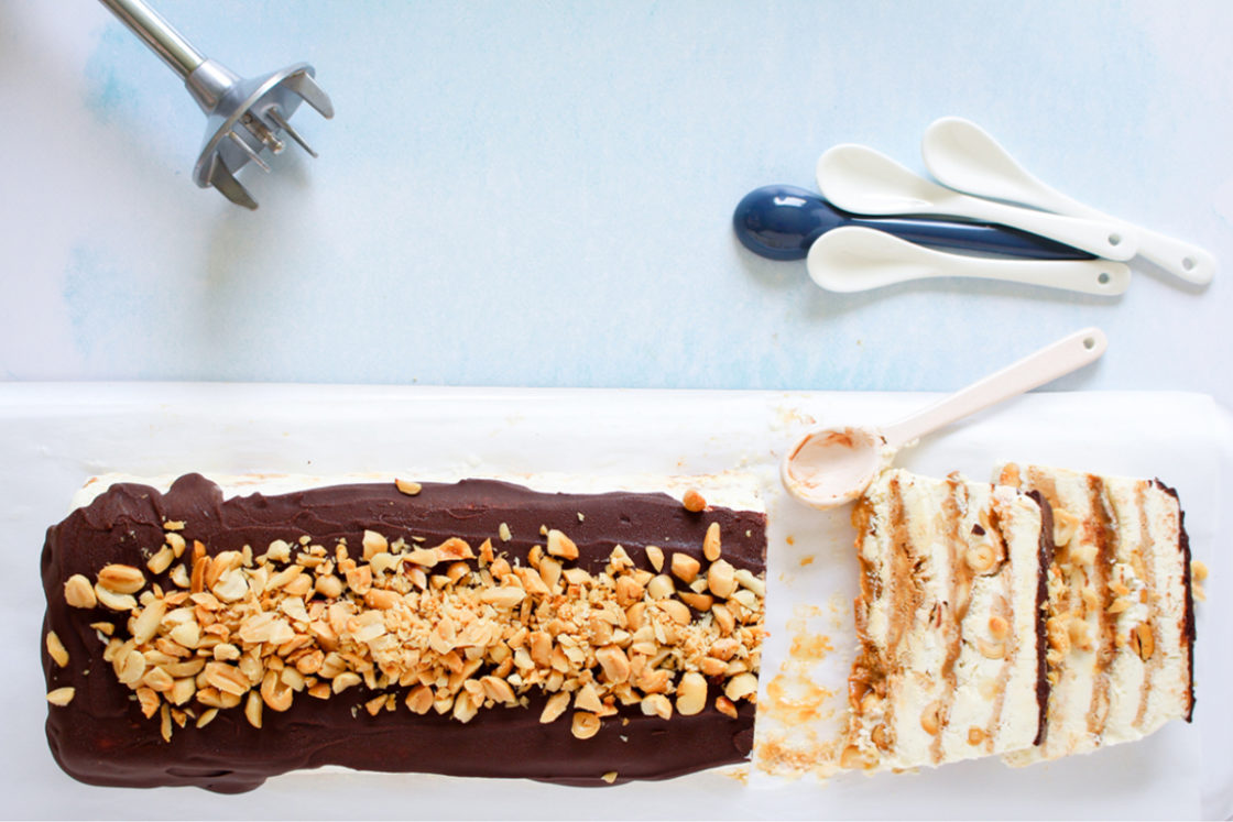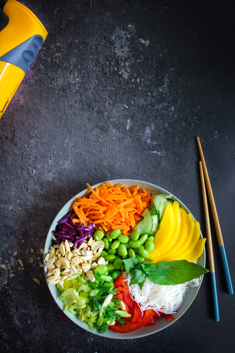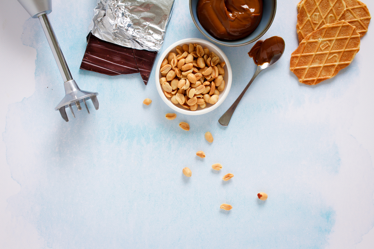 3 Haal de steelpan van het vuur en mix de massa glad met je bamix staafmixer.