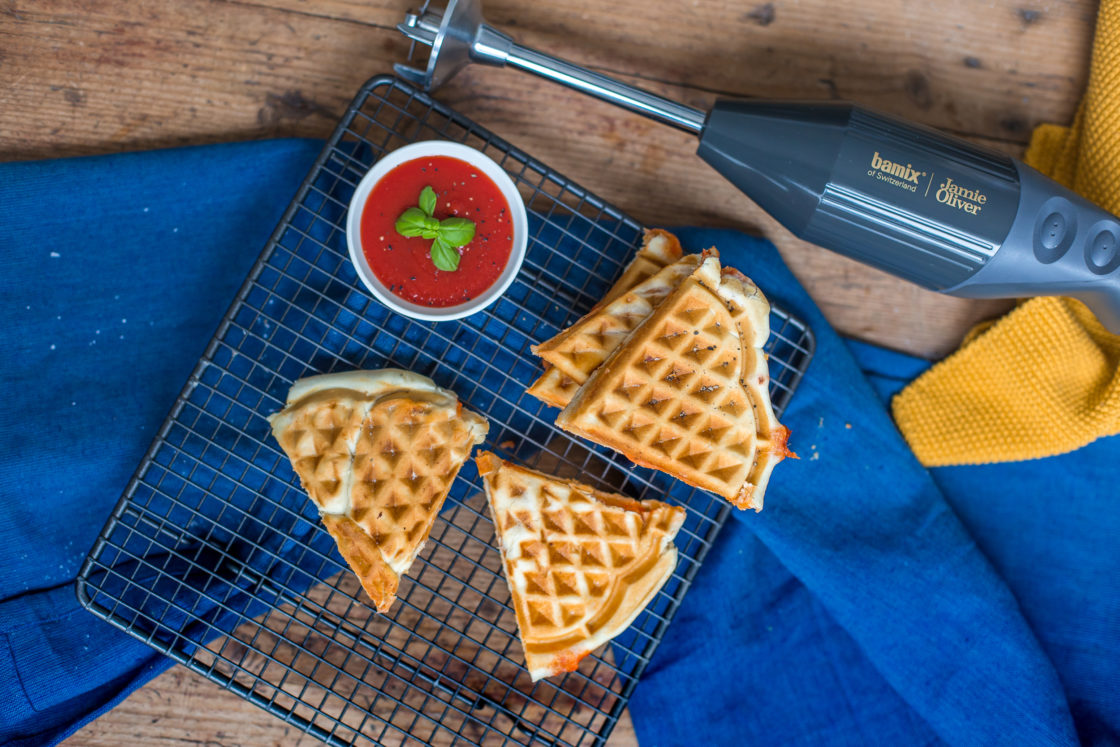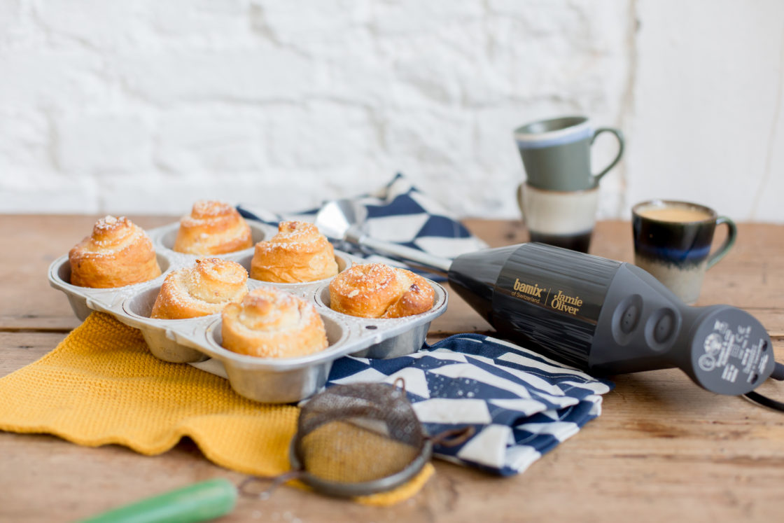 13 Als afwerking maak je ‘sneeuw’ van de kokosnoot door gebruik te maken van de bamix SliceSy. Strooi wat van de rasp over de macarons.