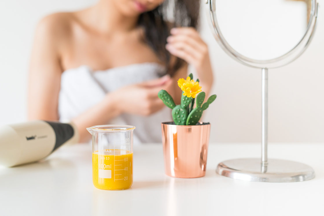 - Schuif het mes op de bamix en mix lang, tot je een fijne textuur zonder bellen krijgt. Voeg er enkele druppels essentiële pompelmoesolie aan toe en mix opnieuw.